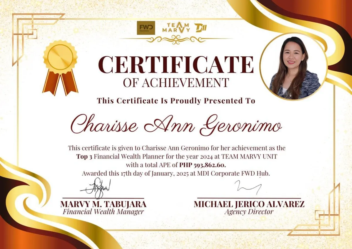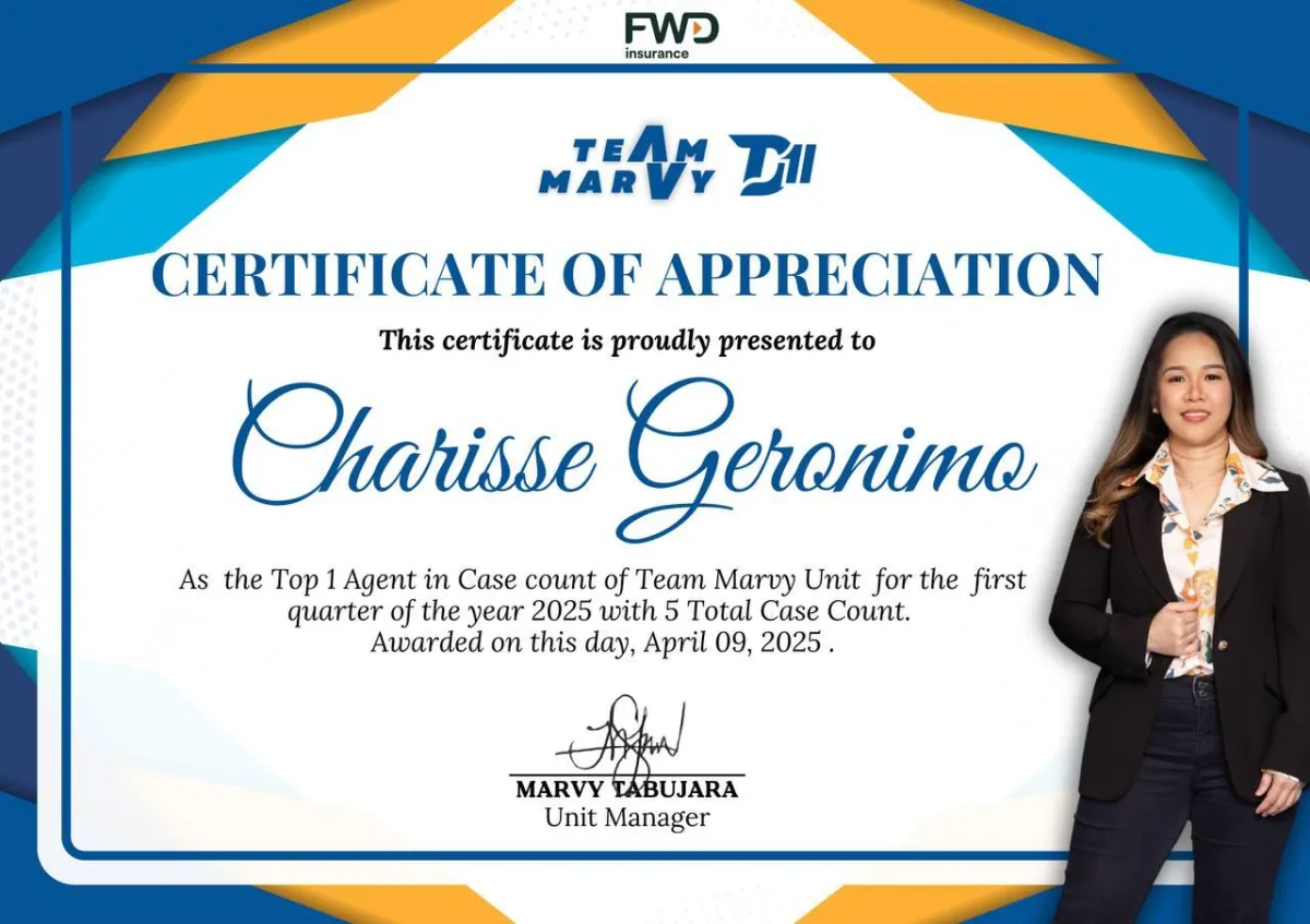 "Thank you, Ms. Charisse, for helping me find the perfect insurance that suits my lifestyle. Now, I have peace of mind knowing that no matter what happens, I’m covered with comprehensive health insurance while also building my retirement fund. Kudos to you!."